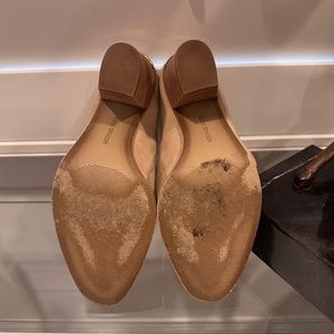Almond toe Slip-on style with rubber sole and outsole, padded insole