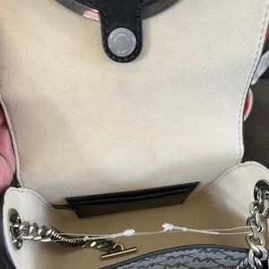 Michael Kors Camera Handbag, 6 inches tall x 7 inches wide with crossbody strap. Key pockets on side of bag, great crossbody bag.