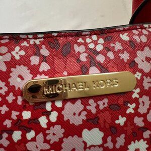 Michael Kors Camille Satchel LG Red Floral 38S8XCAS3R Top Handle Removable Strap