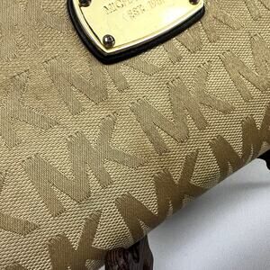 Michael Kors Canvas And Leather Tan & Navy Fabric Zip Around Wallet 8.5 inch