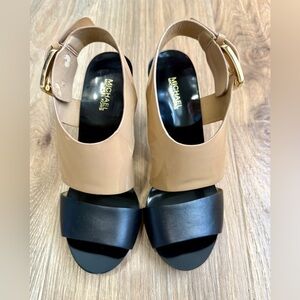 Michael Kors Carla Platform Heels Beige Tan Black Leather Size 7 US EUC