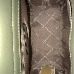 Michael Kors Carmen Medium Flap Satchel/ BLFLD Wallet MK Logo Light Sage NWT