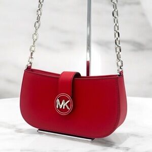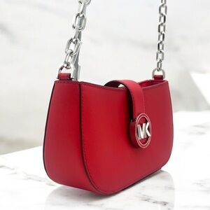 Michael Kors Carmen Small Pouchette Crossbody Bag Red/Silver