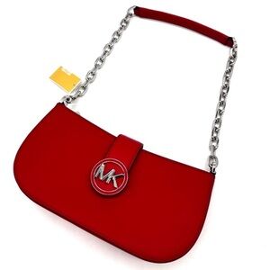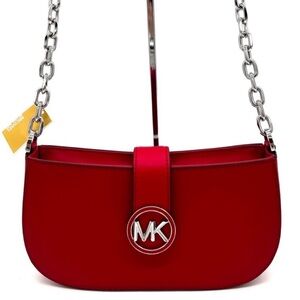 Michael Kors Carmen Small Pouchette Crossbody Bag Red/Silver