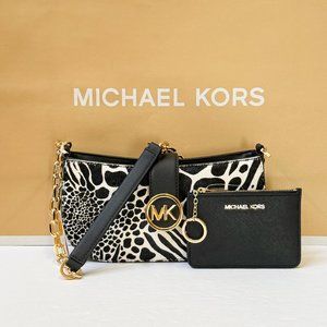 Michael Kors Carmen Small Shoulder Chain Bag Black Haircalf + Coin ID Key Wallet