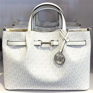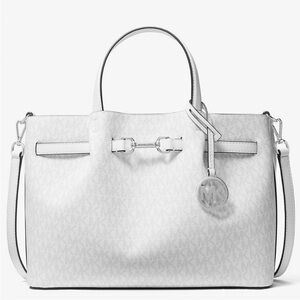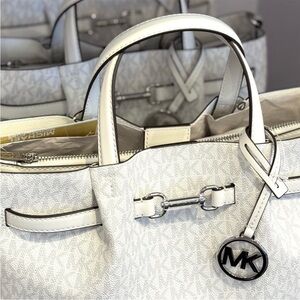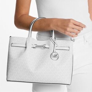 Michael Kors Carson Medium Signature Logo Satchel Bag Optic White