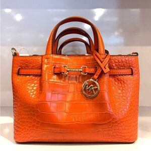 Michael Kors Carson Small Crocodile Embossed Satchel Bag Red Clay