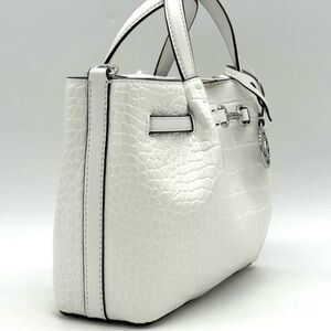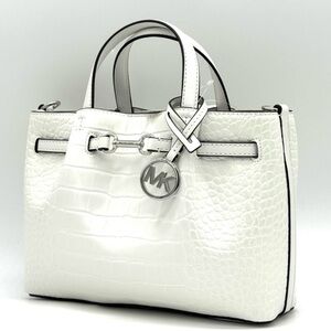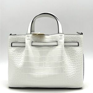 Michael Kors Carson Small Crocodile Embossed Satchel Bag Optic White