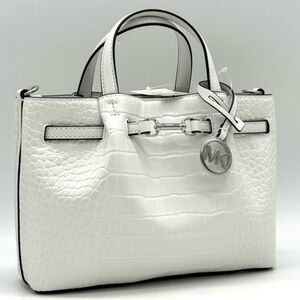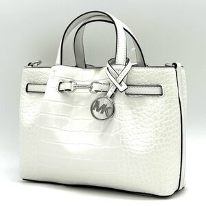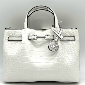 Michael Kors Carson Small Crocodile Embossed Satchel Bag Optic White