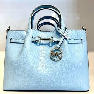 Michael Kors Carson Small Pebbled Leather Satchel Bag Light Sky Blue