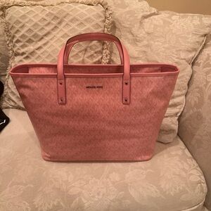 MICHAEL Michael Kors "Carter" tote bag in allover monogram cotton, PVC, and faux leather (polyurethane)