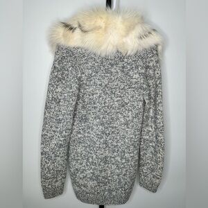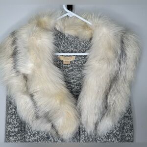 Michael Kors Cashmere Plunge Neckline Cardigan with Removable Real Mink Collar