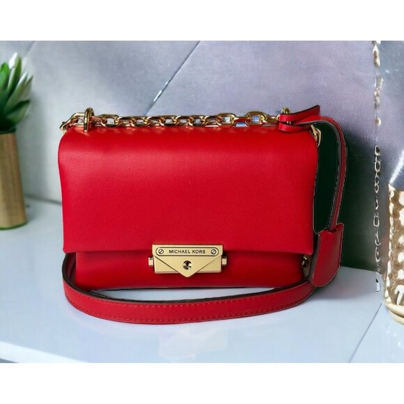 Michael Kors Cece Small Red Faux Leather Convertible Flap Crossbody Bag NWT