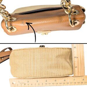 Michael Kors Cecelia Small Woven Raffia Brown Leather Flap Crossbody