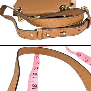 Removable leather & chain crossbody strap is pictured at 23" drop which is the median of 5 length options