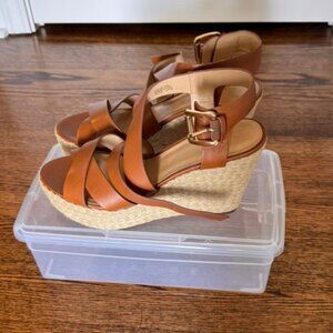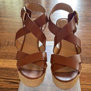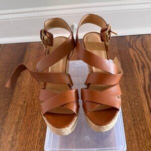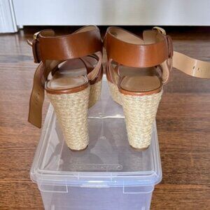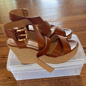 Michael Kors Celia Wedge Brown Leather Platform Espadrille Sandals, 10M
