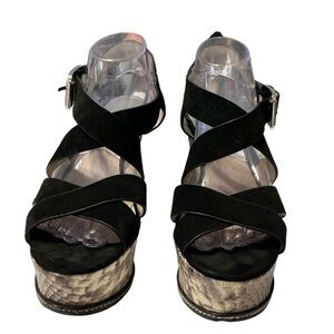 Michael Kors Celia Wedge Sandals Heels Size 10M Black/Gray snake print