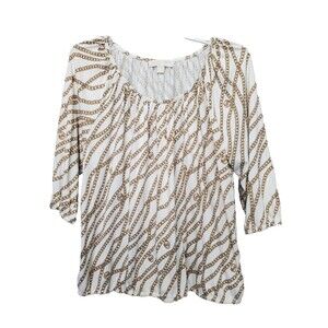 Michael Kors Chain Print Scoop Neck 3/4 Sleeve Knit Blouse Size 2X
