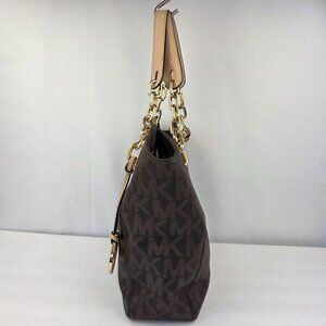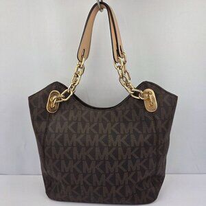 Michael Kors Chain Shoulder Tote Dark Brown MK Logo Print