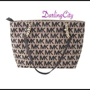 New without Tag Michael Kors Jet Set Item Chain Tote Signature Jacquard Beige/Black MSRP:248