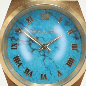 Michael Kors Channing Gold Tone Turquoise 38mm Watch 5.5" Bracelet w New Battery