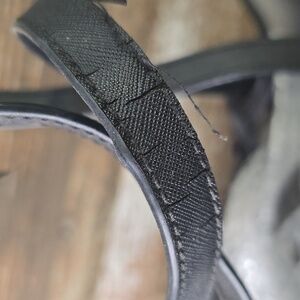 Some peeling of leather on handles. Good little tote bag for everyday use. Has key strap attached.