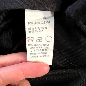 This Michael Kors Charcoal Grey Pinstripe Suit is a classic 2-piece ensemble for men, featuring a four-button jacket with a notch lapel and single vented back. Made from a blend of polyester and rayon, the suit includes a long jacket in size 46 with a 39-inch waist and a straight leg style pants in size 39L. The timeless striped pattern and flat front design make it a versatile and sophisticated addition to any wardrobe, perfect for formal occasions or professional settings. With its high-quality construction and stylish details, this suit exudes a sense of elegance and sophistication.