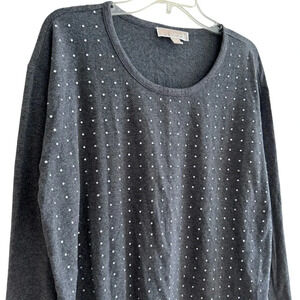Michael Kors Charcoal Grey Rhinestone Top Tee Long Sleeve Crew Neck Hi-Low L