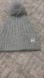 Michael Kors charcoal knit beanie. Features a playful pom pom and logo accent.