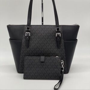Michael Kors Charlotte Bag & Double Zip Wallet Black