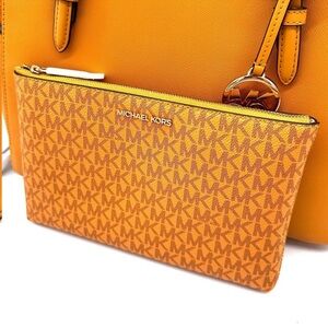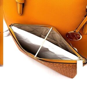 Michael Kors Charlotte LG Tote Bag 3 IN 1 Leather Shoulder Bag Cider