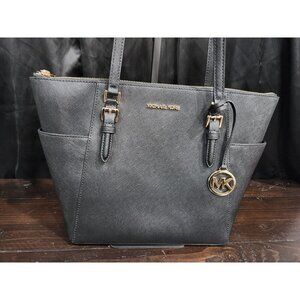 Michael Kors Charlotte Large Saffiano Black Leather Top-Zip Tote Bag/Excellent U