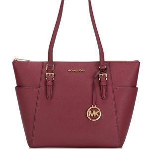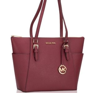Michael Kors Charlotte Large Saffiano Leather Top-Zip Tote Bag - Dark Cherry