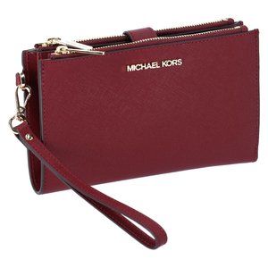 Michael Kors Charlotte Large Top Zip Leather Tote Dark Cherry Leather + Wristlet
