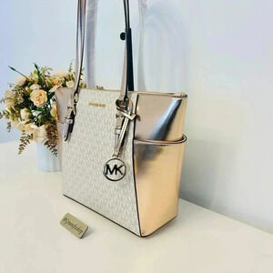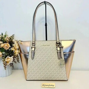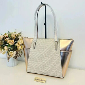 Michael Kors Charlotte Top Zip Tote shoulder bag rose gold