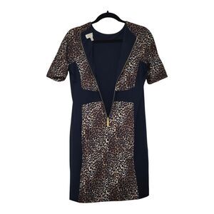 Michael Kors Cheetah Print Panel Dress Sz 6 S- Ponte Knit- Leopard - Black Brown