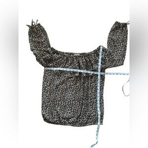Michael Kors Cheetah-Print Ruffled Top peasant blouse off- shoulder Size Small