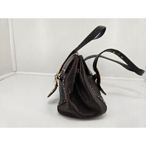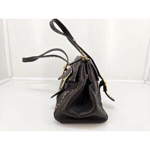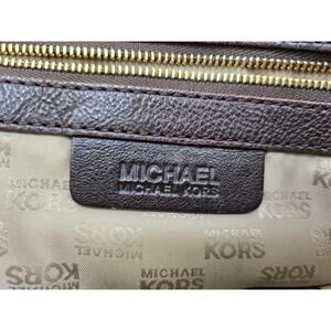 Elevate your style with this stunning Michael Kors chocolate brown leather satchel! This beautiful shoulder bag features elegant gold-tone stud detailing that adds a touch of sophistication to any outfit.