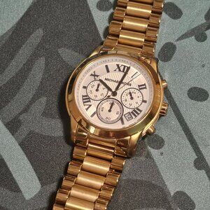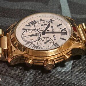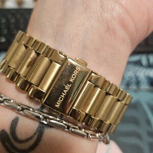I wore it gently very few time to match my outfit but I'm more of a silver person. See pics for minor wear scratches. Battery has been just replaced and works well. No boxes no papers. I purchased it in the Maryland Mall MK store.