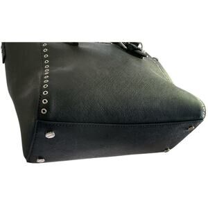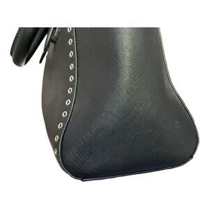 Michael Kors Ciara Grommet Medium Leather Messenger Bag Black Gold Hardware