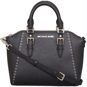 Elevate your style with this stunning Michael Kors Ciara Grommet Medium Leather Messenger Bag!