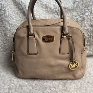 Michael Kors Cindy leather nude medium satchel with gold hardwares and charm
