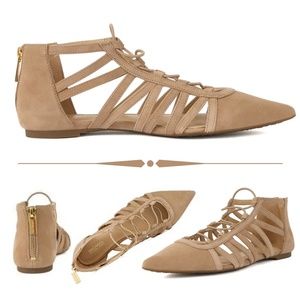 Michael Kors Clarissa Nude Suede Flat Sandal Leather Pointed Toe Slide Flats 7.5