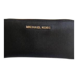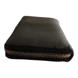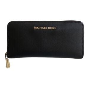 Michael Kors wallet, black leather wallet, Saffiano leather, zip-around wallet, gold hardware, designer wallet, MK wallet, preowned Michael Kors, women’s wallet, classic wallet, everyday wallet, luxury wallet, card holder, zipper wallet, MK zip wallet