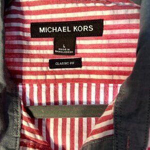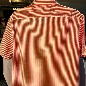 Michael Kors Classic Fit 100% Cotton Red White Stripe Short-Sleeve Btn-Up SZ Lrg