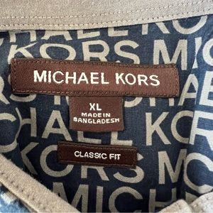 Michael Kors Classic Fit Button Down Monogram Short-Sleeve Shirt. 100% cotton. Machine wash warm. Very good condition.
