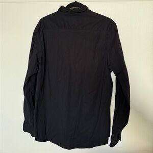 Stylish black button-down shirt. Ideal for casual wear. Features a classic collar and button closure. No flaws, worn handful of times.
