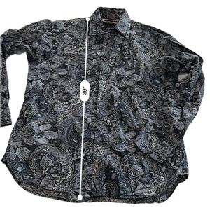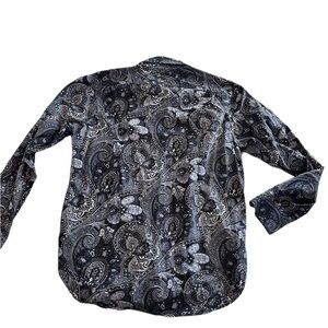 Michael Kors Classic Fit Button-Down Shirt for Men in size M. Featuring a beautiful design in various shades of blue, this shirt is perfect for any occasion. While it's missing a button on the cuff, it's an easy fix for someone handy. Otherwise, it's in like-new condition, ready to add style to your look.