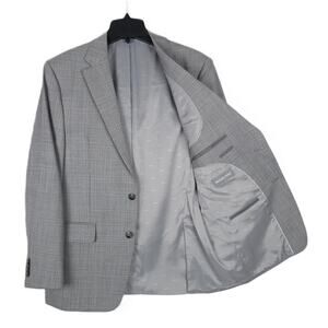Michael Kors Classic-Fit Wool 2-Piece Suit Grey Blue Windowpane 40R 34x32 NWT
