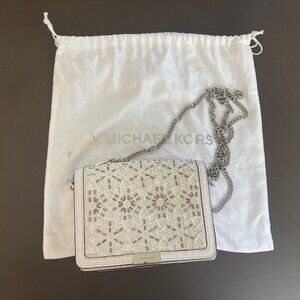 Michael Kors Clutch Crossbody Bag Purse Jade Medium Gusset Embroidered Leather